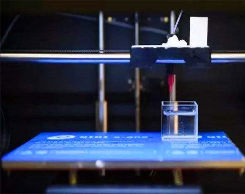 研究人員將金納米粒子分散到水中,并將聚合物配體分散到硅油中,然后用改進后的3D打印機將螺紋形的水注入硅油——使一種液體在另一種液體中形成螺紋狀雕刻結構。水注入硅油不久,硅油中許多配體附著到水中的金納米微粒上,在管狀水柱邊界形成一種納米粒子超濾膜,能防止水管破裂成液滴,穩定水油界面,將水鎖定在適當位置。